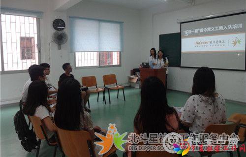 (陈翠仪)7月12日下午,“乐活一夏”暑期夏令营义工新入队培训在北斗星社工岭南街家庭综合服务中心小培训室顺利开展。本次培训对象为华南农业大学理学院的义工,他们即将为中心7月份的“乐活一夏”暑期夏令营投入服务,为了让他们更清晰地了解夏令营的安排及义工岗位职责,特意开展本次新入队培训。