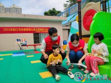 阳江市民政志愿者关爱困境儿童。