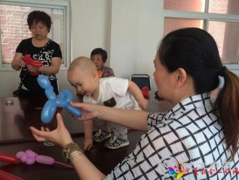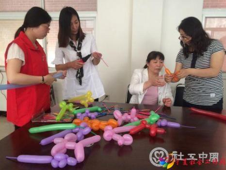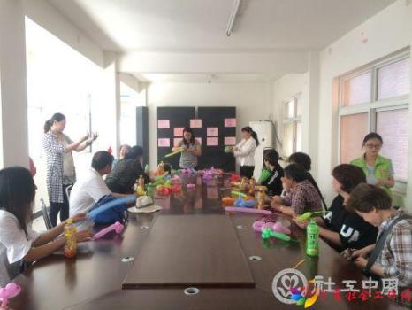 “良好的亲子关系是孩子健康成长的基础,父母应该多和孩子进行平等的交流与沟通”——教育专家唐曾磊。血浓于水,亲子之情虽与生俱来,但由于现在社会竞争日趋激烈,越来越多的年轻父母把大部分的精力用在事业的拼搏上,与孩子的交流却越来越少。每一种关系的升华都有赖于交流,为了了解儿童的世界,改善亲子关系,2016年5月17日丰产路街道办事处春暖社工站联合尚和社工、玖久社工顺利开展了“魔法变变变,气球转转转”系列活动,让家长学习制作魔法气球,体验DIY乐趣。