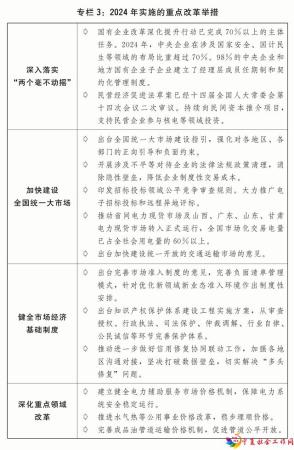 三是促进各种所有制经济优势互补、共同发展。高质量完成国有企业改革深化提升行动。实施国有经济布局优化和结构调整指引,完善国有企业分类、分行业考核评价体系,深入推进战略性重组和专业化整合。落实民营经济促进法,加快配套制度建设。进一步加大拖欠企业账款清偿力度,建立拖欠企业款项信用监管机制。开展加力帮扶小微企业纾困解难专项行动,用好支持小微企业融资协调工作机制。健全企业信用状况综合评价体系,提升融资信用服务平台质效。完善全国中小企业服务“一张网”,加强个体工商户分型分类精准帮扶。持续推动完善中国特色现代企业制度。