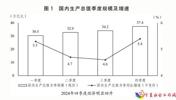 (一)因时因势加强和创新宏观调控,推动经济回升向好。扎实开展宏观政策逆周期调节,加大政策力度,释放政策效能,特别是9月26日中央政治局会议果断部署一揽子增量政策,市场预期、社会信心有效提振,四季度经济明显回升。全年国内生产总值(GDP)134.9万亿元、增长5%,其中,一、二、三产业分别增长3.5%、5.3%、5%。