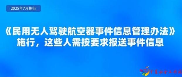 为规范民用无人驾驶航空器事件信息的管理,准确掌握有关无人驾驶航空器安全运行信息,及时发现安全隐患,控制运行风险,日前,民航局印发《民用无人驾驶航空器事件信息管理办法》,自7月1日起施行。《办法》要求,特定类和审定类合格证持有人、拥有中型和大型无人驾驶航空器50架(含)以上的开放类合格证持有人、拥有大型无人驾驶航空器10架(含)以上的开放类合格证持有人应当制定事件信息管理程序,指定满足条件的人员负责事件信息管理,并按要求报送事件信息。事发相关单位和人员应当按照规定如实报告事件信息,不得瞒报、谎报或者迟报。