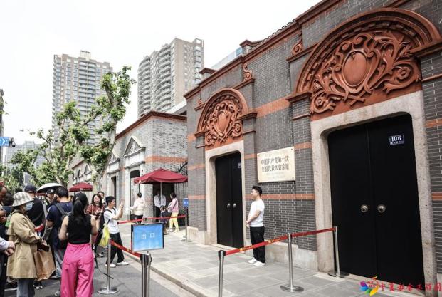 2025年5月1日,游人在位于上海的中共一大会址前留影。新华社记者 刘颖 摄
