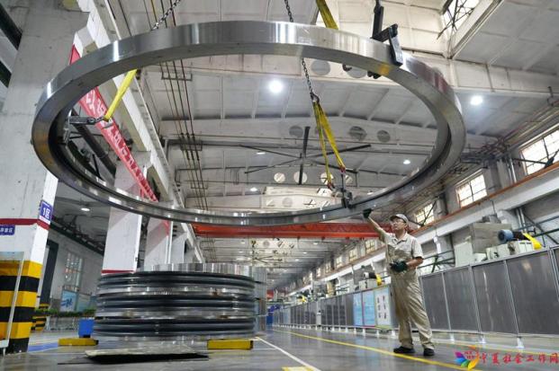 2025年5月22日,工人在位于河南洛阳的洛轴集团风电三车间生产线上作业。新华社记者 李嘉南 摄