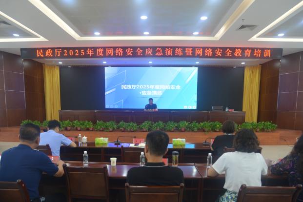 为进一步提升全厅网络安全防护水平,健全网络安全应急响应机制,切实保障民政信息系统和民生数据安全,8月15日,自治区民政厅组织开展“2025年网络安全应急演练暨网络安全教育专题培训”。机关全体工作人员、厅属单位负责人及信息化工作技术骨干参加了培训。