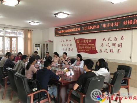 为了明确“牵手计划”的方向与计划等事项,南海区民政局和三江县民政局共同召开了“牵手计划”对接会,南海区民政局副局长丁坚、社工科科长周雪锋、三江县民政局局长龚志强、副局长马安秀等领导、久元养老以及启沅社工都共同出席了会议。