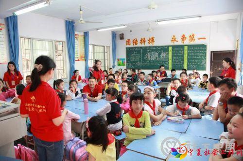 图为阳光社工与学生进行互动
