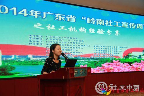 图为:深圳市阳光家庭综合服务中心副总干事王娟发言