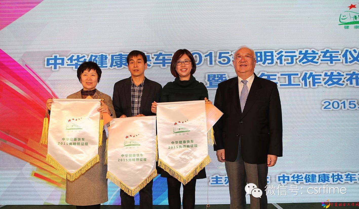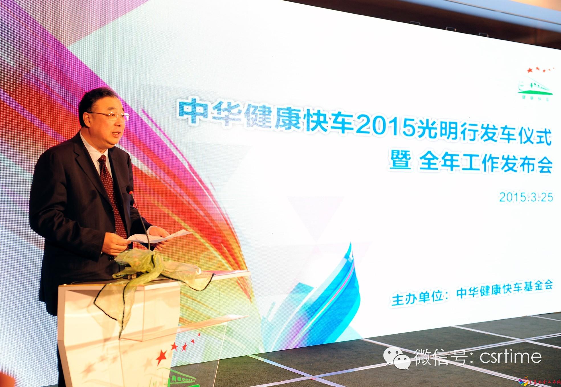 2015年3月25日上午,简朴隆重的“中华健康快车2015光明行发车仪式暨全年工作发布会”在北京港澳中心举行。国家卫生和计划生育委员会副主任马晓伟、中国铁路总公司副总经理王志国等国家部委领导,健康快车创会主席方黄吉雯及国务院国资委原主任李荣融等众多健康快车的部长级资深志愿者出席了发布会。
