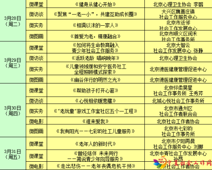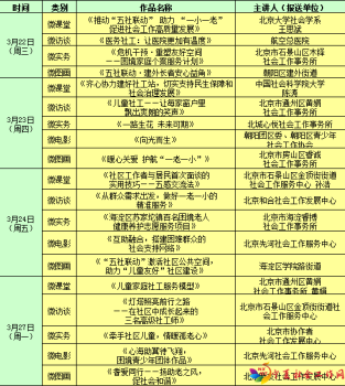 3月21日-3月31日北京社工宣传周期间,将在线直播“五微”宣传活动内容。