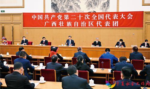 2022年10月17日,习近平同志参加党的二十大广西代表团讨论。新华社记者 谢环驰/摄
